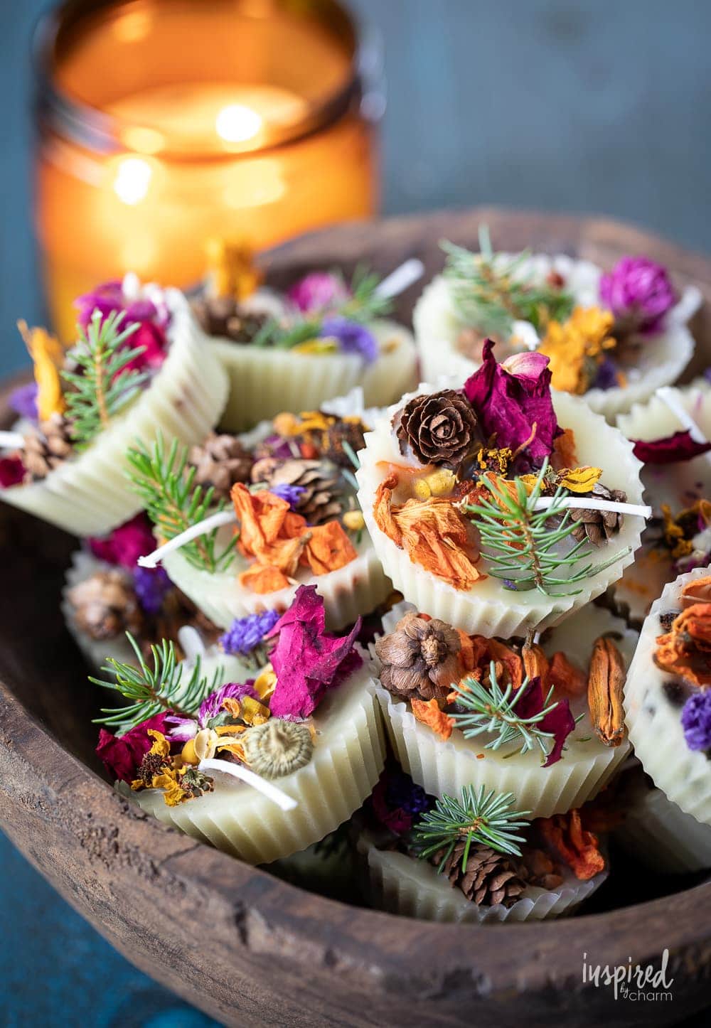 Does someone in your life have a wood stove or love to burn cozy fires all winter? Made with beeswax and natural elements like cinnamon sticks, pinecones, dried flower and herbs, DIY fire starters make pretty AND practical homemade gifts! They can help kick-start a fire and offer natural aroma if you choose to scent them with essential oils. This adorable tutorial from Inspired by Charm will show you how.