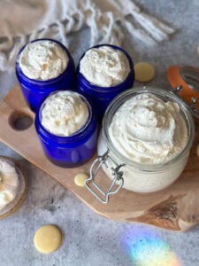 - Finally, transfer the finished whipped body butter into storage containers of choice, such as glass jars with a tight-fitting lid.