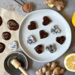 - candy molds (optional) or simply add small spoonfuls onto parchment paper. These heart-shaped silicone candy molds make the perfect size homemade cough drops!