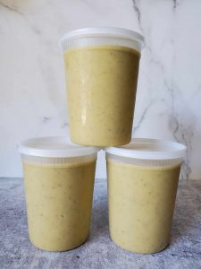 To freeze, allow the soup to cool first and then pack into freezer-safe containers of choice. We love these durable reusable BPA-free quart containers. To reduce the risk of freezer burn, fill the containers nearly full – but be sure to leave about 1/2 to 1 inch of headroom to allow for expansion.