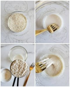 - This time, add 1/3 cup flour and 1/4 cup water to the starter. Mix well.