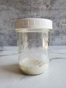 - A pint size mason jar (or similar). Given the small volume, it’s best to start rehydrating the dry sourdough starter in an average jar, glass, or other similar size container.